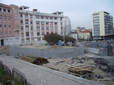 A obra decorre a bom ritmo, dando corpo ao projecto de requalificação do espaço público, empreitada da responsabilidade do Metro, suponho que com o acordo da CML.
