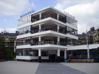 A Openluchtschool de J. Duiker 1929-30 na Clio Straat ( a escola ao ar livre ) "escondida" num logradouro, é outro raro exemplo de "penetração" no Plano, do Funcionalismo Puro do "Nieuwe Bouwen". Por sinal completamente restaurada segundo os mais rigorosos e puristas preceitos estabelecidos pelo DOCOMOMO ( o ICOMOS dos Monumentos do Movimento Moderno ) ... a fórmula de restauro a aplicar no "Bairro das Estacas".