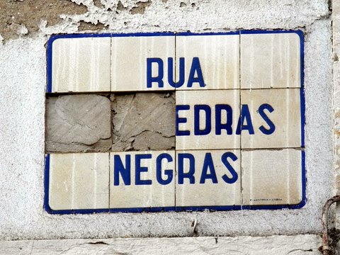 O estado de abandono e degradação de muitas placas toponímicas da capital é o retrato fiel e perfeito de Lisboa: Rua das Pedras Negras (Sé).