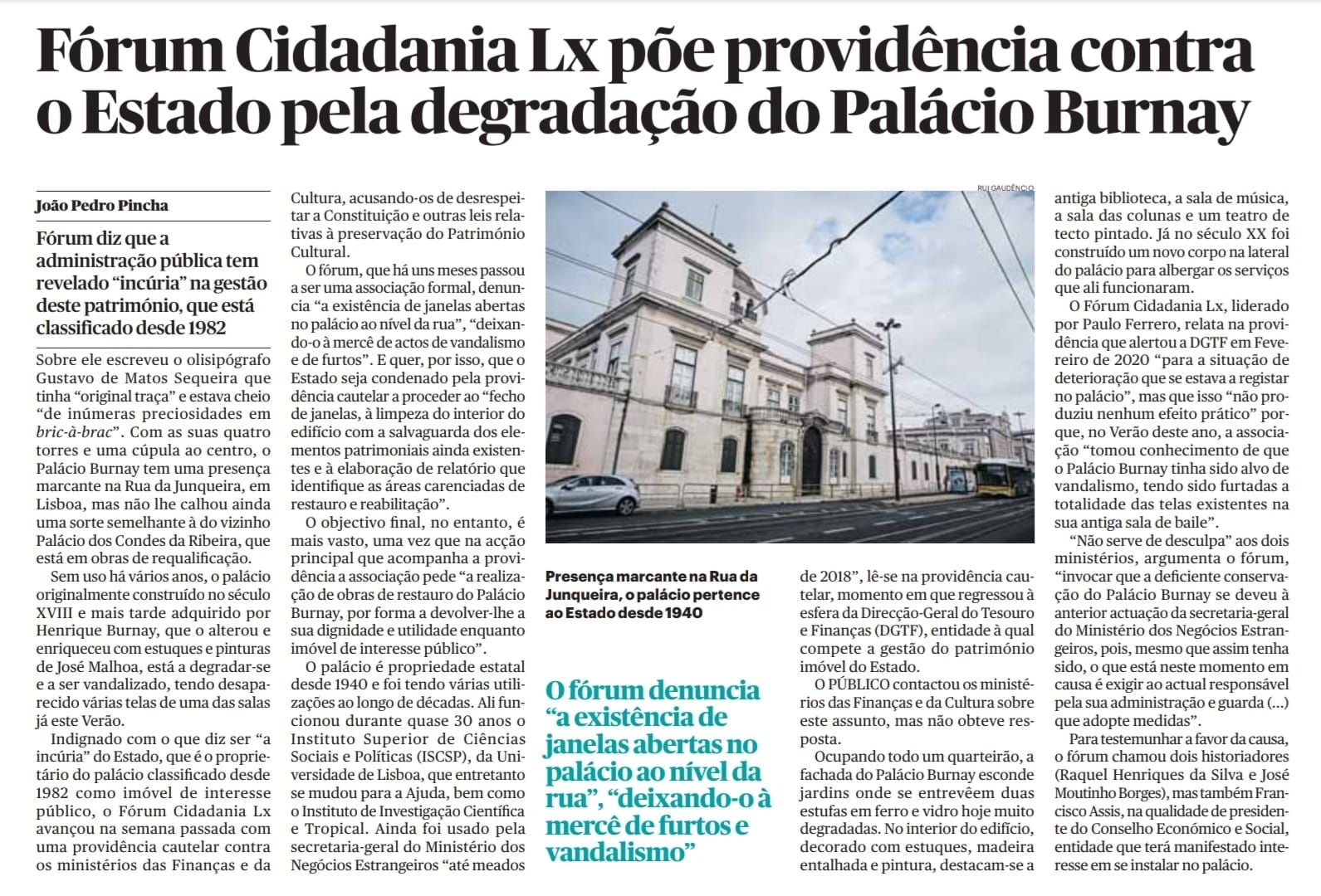 "Fórum Cidadania Lx avança com providência contra o Estado pela degradação do Palácio Burnay"